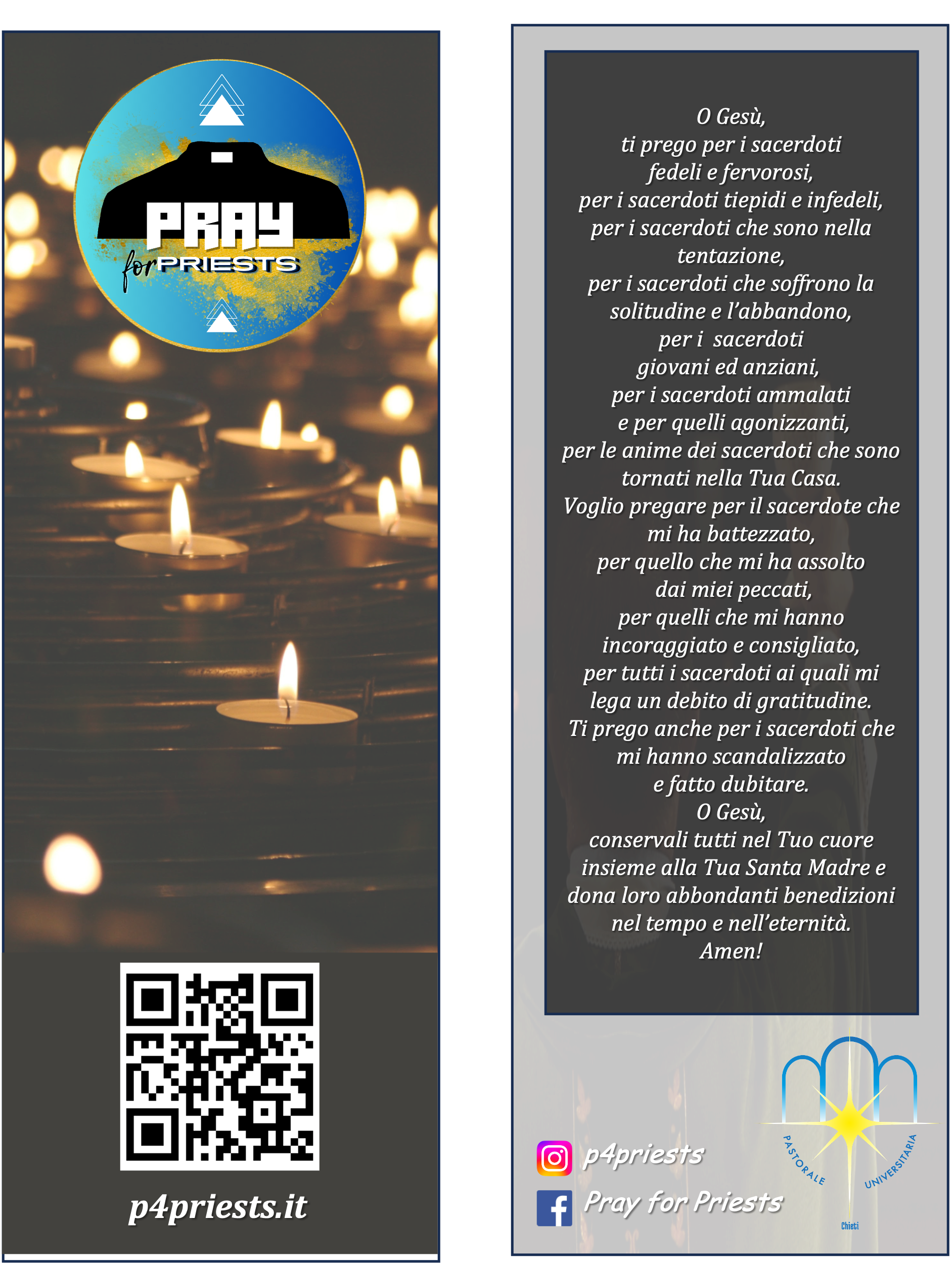 Aiutiamoli ad aiutarci! COSA Pregare e dire agli altri di pregare! DOVE Ovunque siamo nel mondo! COME Nel modo che sentiamo più nostro oppure con le preghiere che verranno suggerite! . QUANDO Secondo le proprie possibilità ma sarebbe bello prendersi un impegno costante E TU QUANTO VUOI IMPEGNARTI? DILETTANTE Una volta a settimana 30% ESPERTO Una volta al giorno 60% PROFESSIONISTA Più volte al giorno 90% Modulo Iscrizione Fai clic qui INSIEME